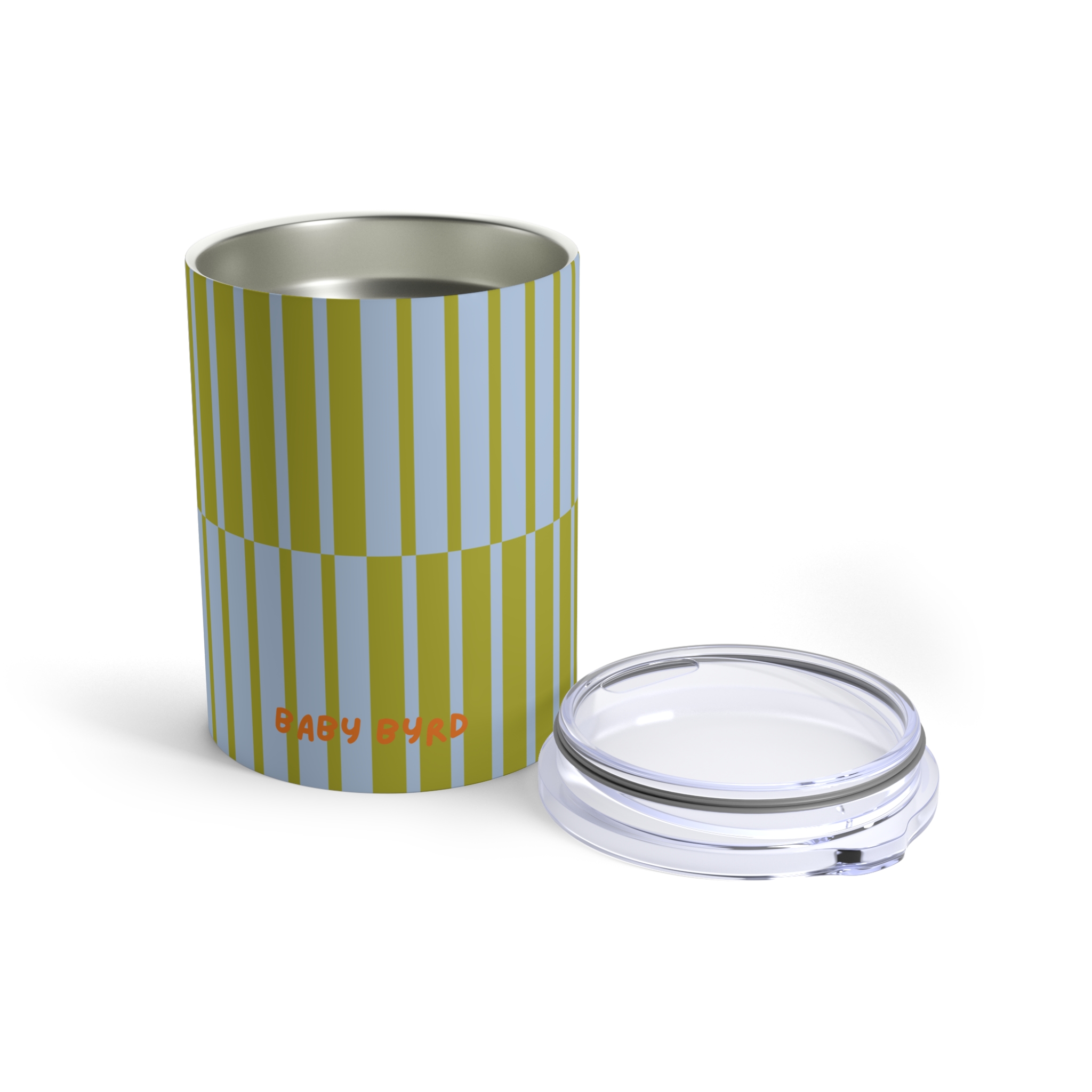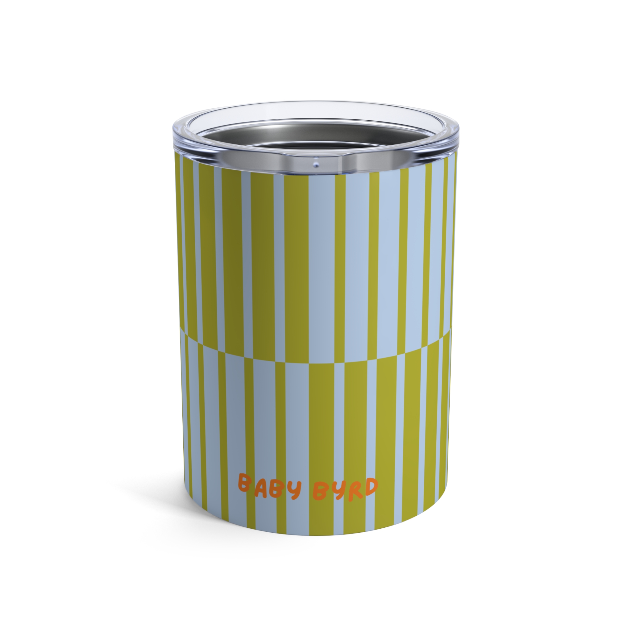 Sip in style with the Born to Be Fly Travel Tumbler by Baby Byrd. This 10oz stainless steel cup features a fly blue and green multicolor striped design, perfect for coffee, tea, or your favorite drinks on the go. With its insulated double-wall construction, it keeps beverages hot or cold longer, making it an eco-friendly and stylish alternative to disposable cups.