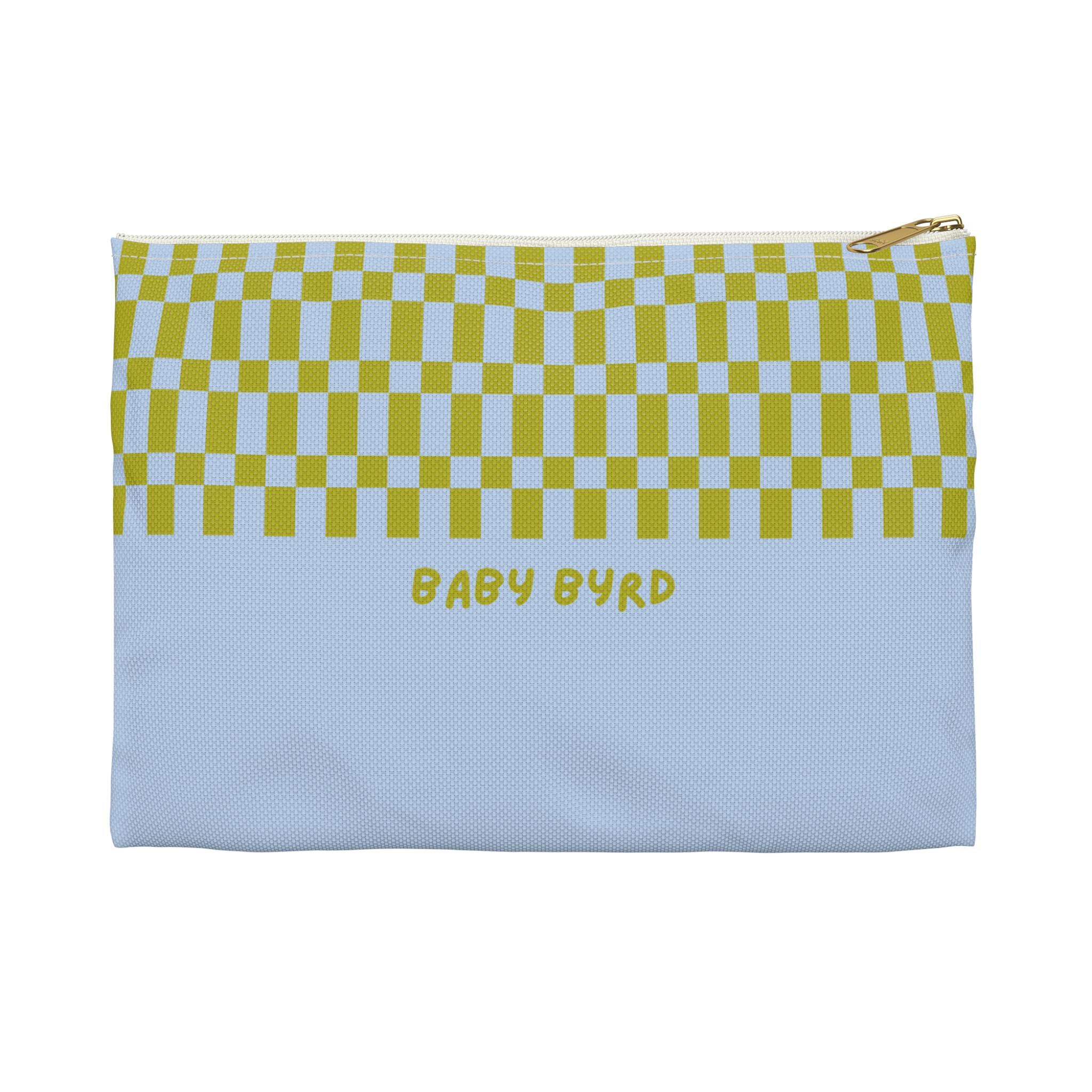 Stay organized in style with the Born to Be Fly Accessory Pouch by Baby Byrd. Featuring a fly blue and green checkered design, this versatile pouch is perfect as a cosmetic travel bag, pencil case, or everyday organizer. Made from durable material with a secure zipper closure, it’s designed to keep your essentials safe whether you’re at school, work, or on the go.