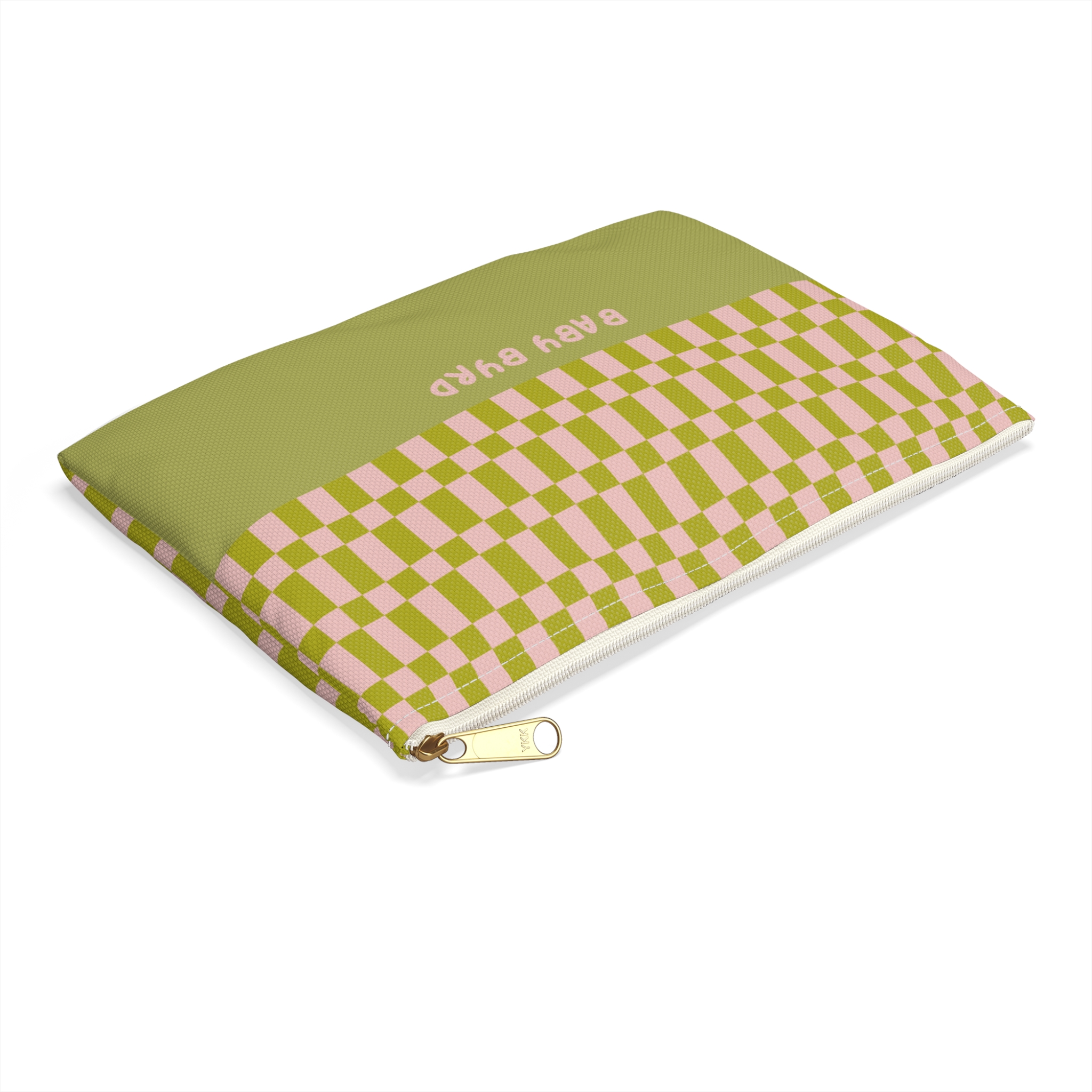 Stay organized in style with the Born to Be Fly Accessory Pouch by Baby Byrd. Featuring a fly green and light pink checkered design, this versatile pouch is perfect as a cosmetic travel bag, pencil case, or everyday organizer. Made from durable material with a secure zipper closure, it’s designed to keep your essentials safe whether you’re at school, work, or on the go.