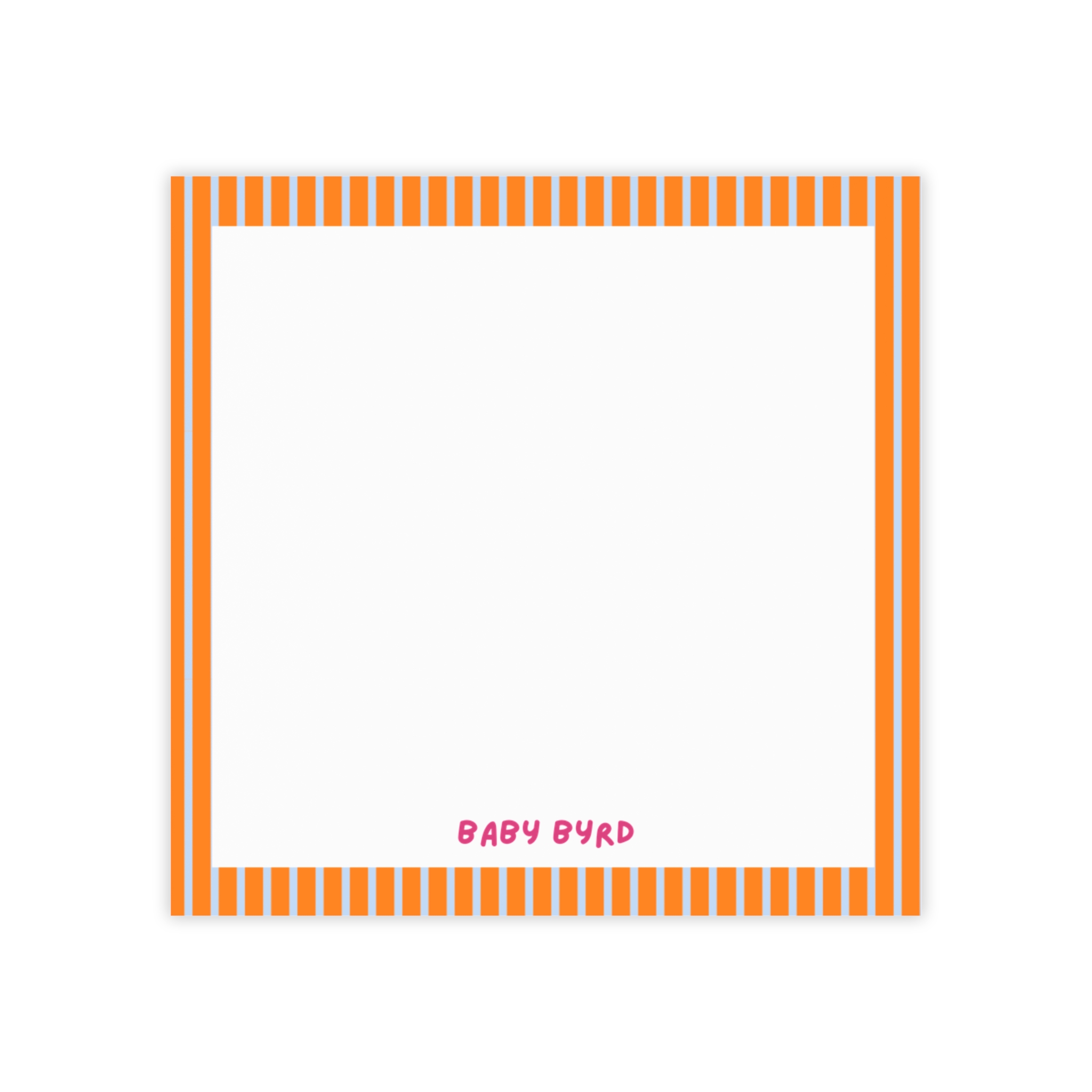 Add a pop of fun and functionality to your desk with these Born to Be Fly multicolor blue and orange striped sticky notes by Baby Byrd. Perfect for jotting down reminders, to-do lists, or little love notes, these 3×3 inch adhesive note pads bring creativity and flyness to your everyday routine. With 50 sheets per pad, they’re an essential addition to your office, school, or planner setup.