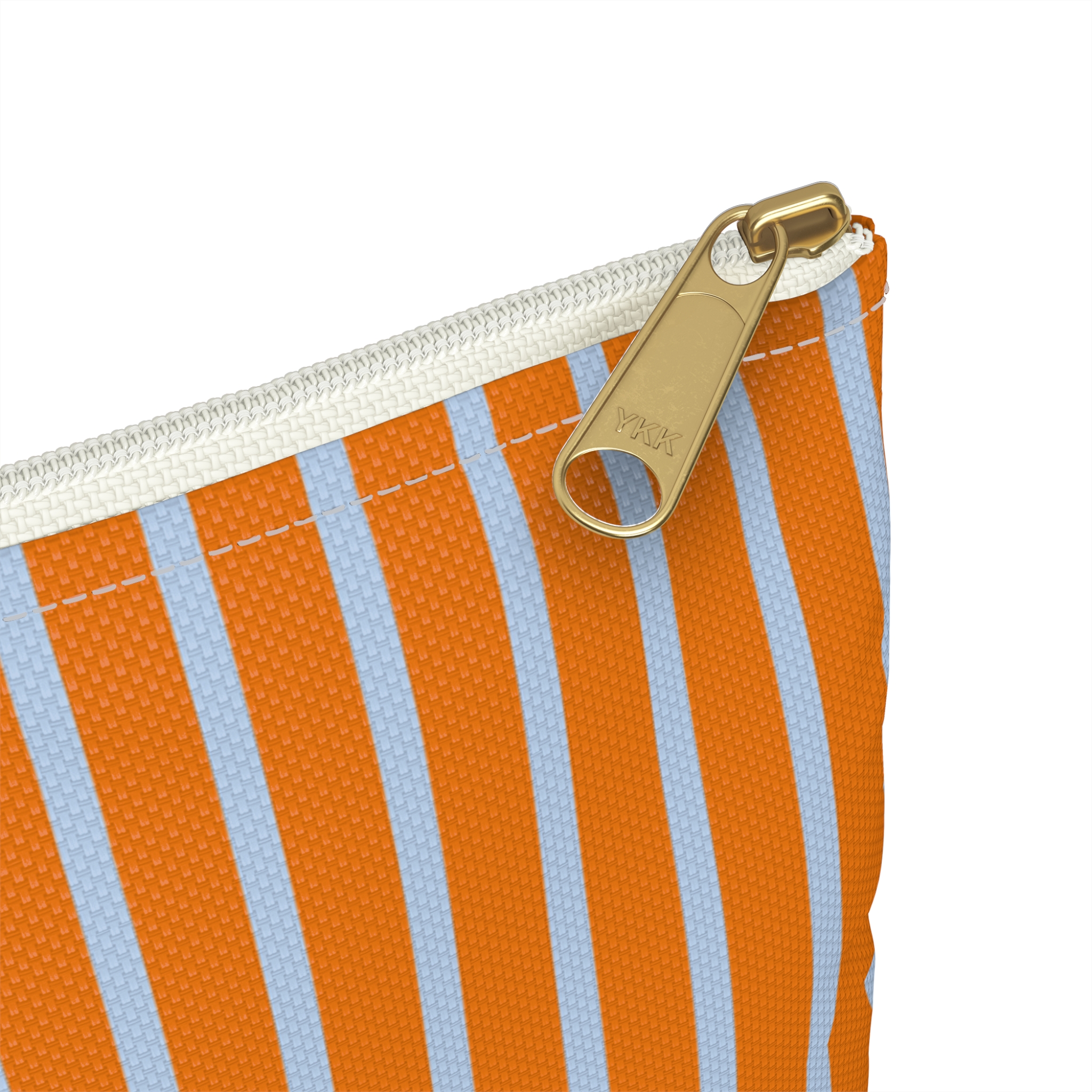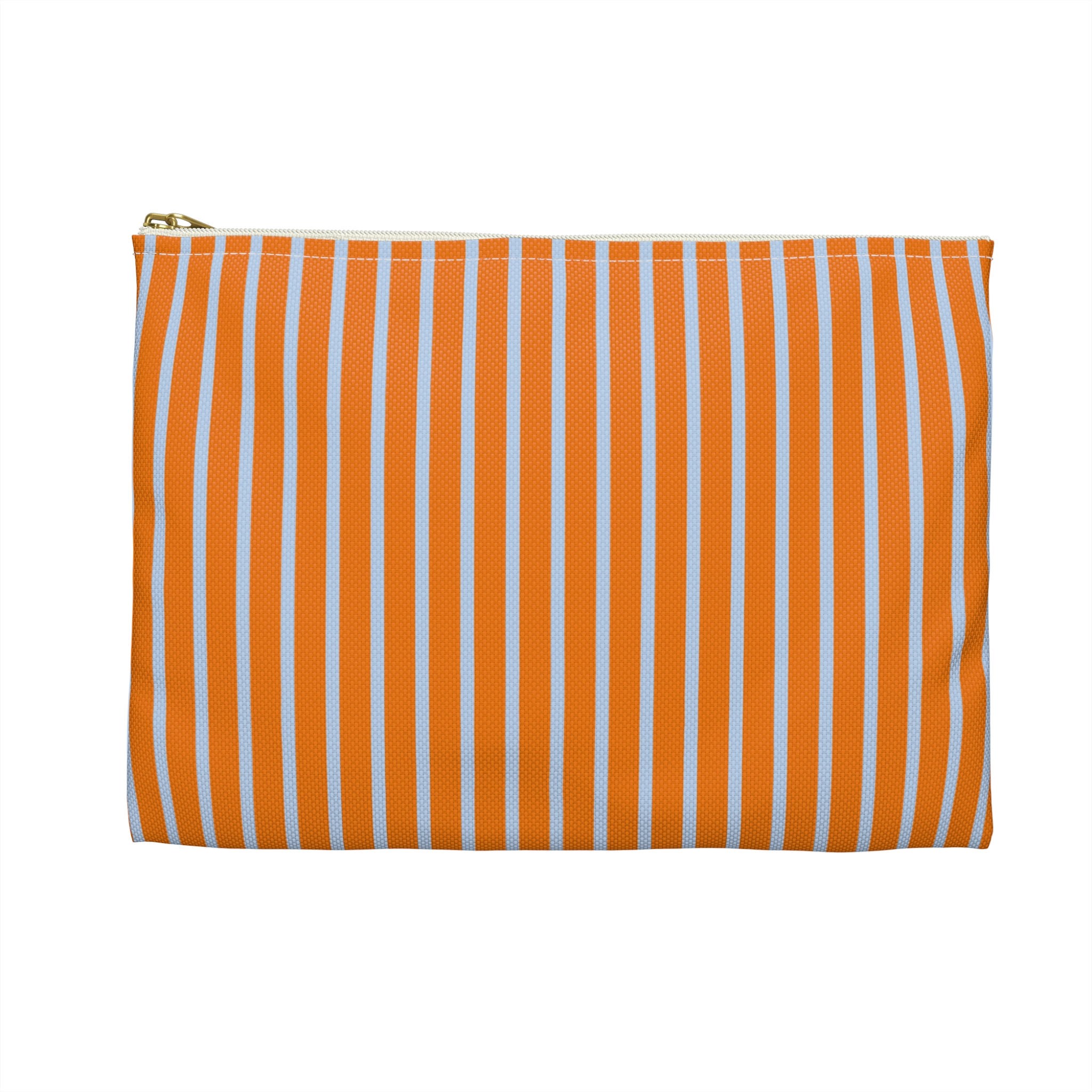 Striped Accessory Pouch– Blue & Orange Zipper Bag for Makeup, Travel, or School Supplies