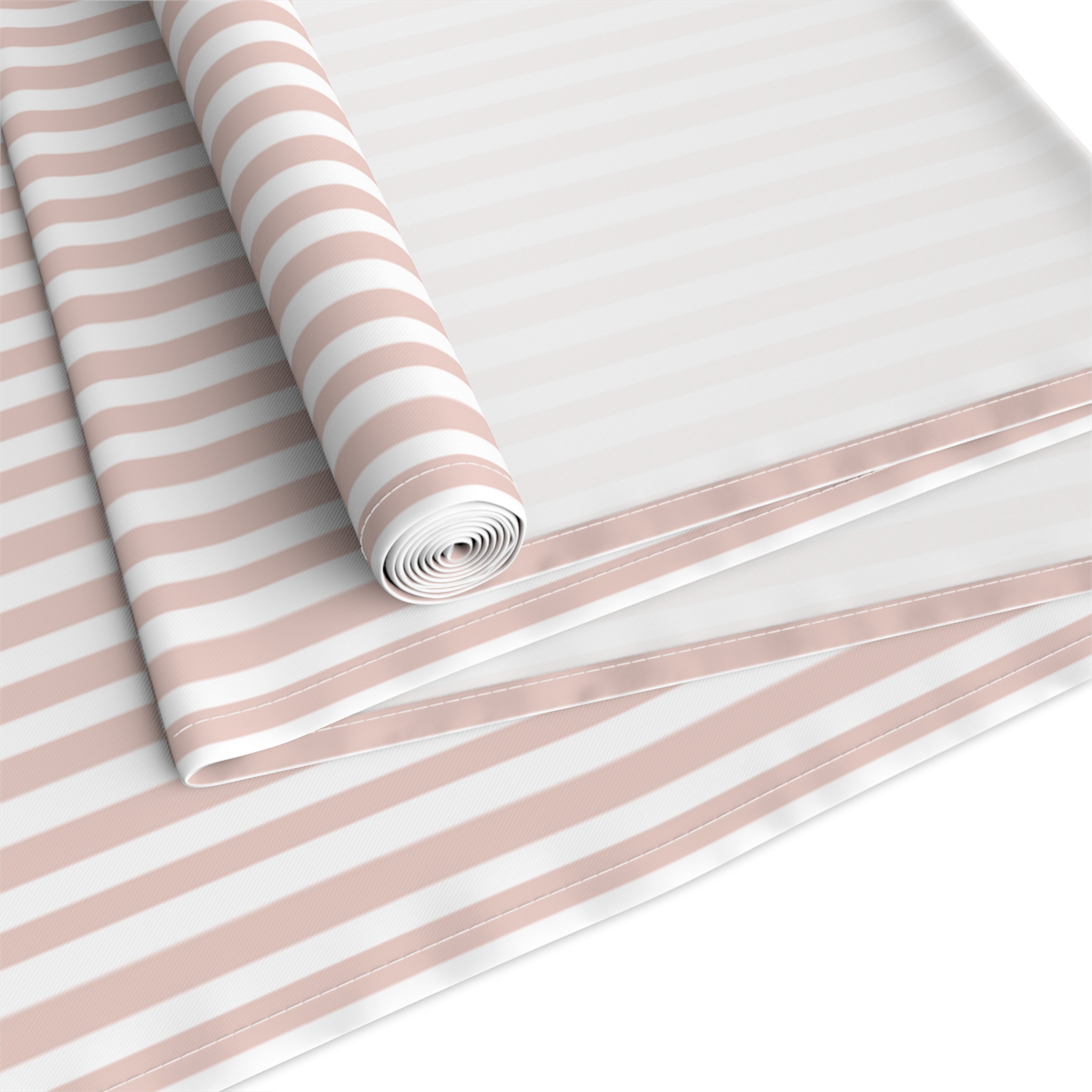 Add a touch of fly to your dining space with the Born to Be Fly Light Pink & White Striped Table Runner by Baby Byrd. Made from durable cotton twill, this striped fabric runner is perfect for elevating everyday meals, seasonal gatherings, or special occasions like weddings and parties. Available in two sizes (16×72 and 16×90 inches), it fits most dining tables and adds a modern yet timeless aesthetic to your home décor.