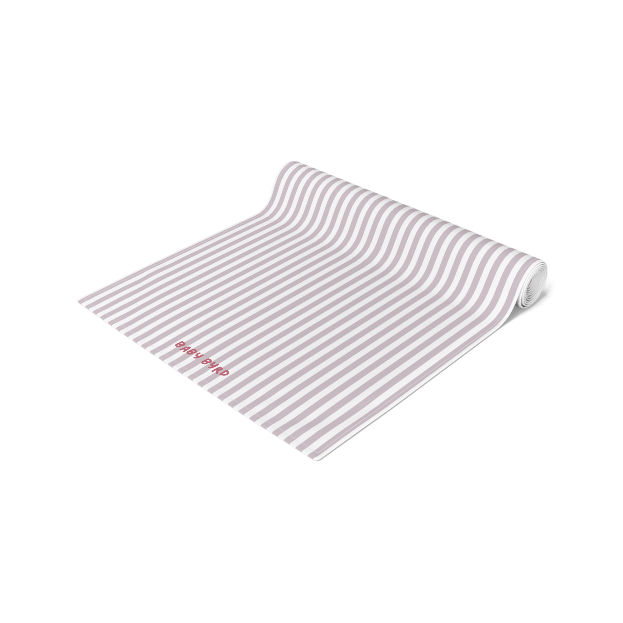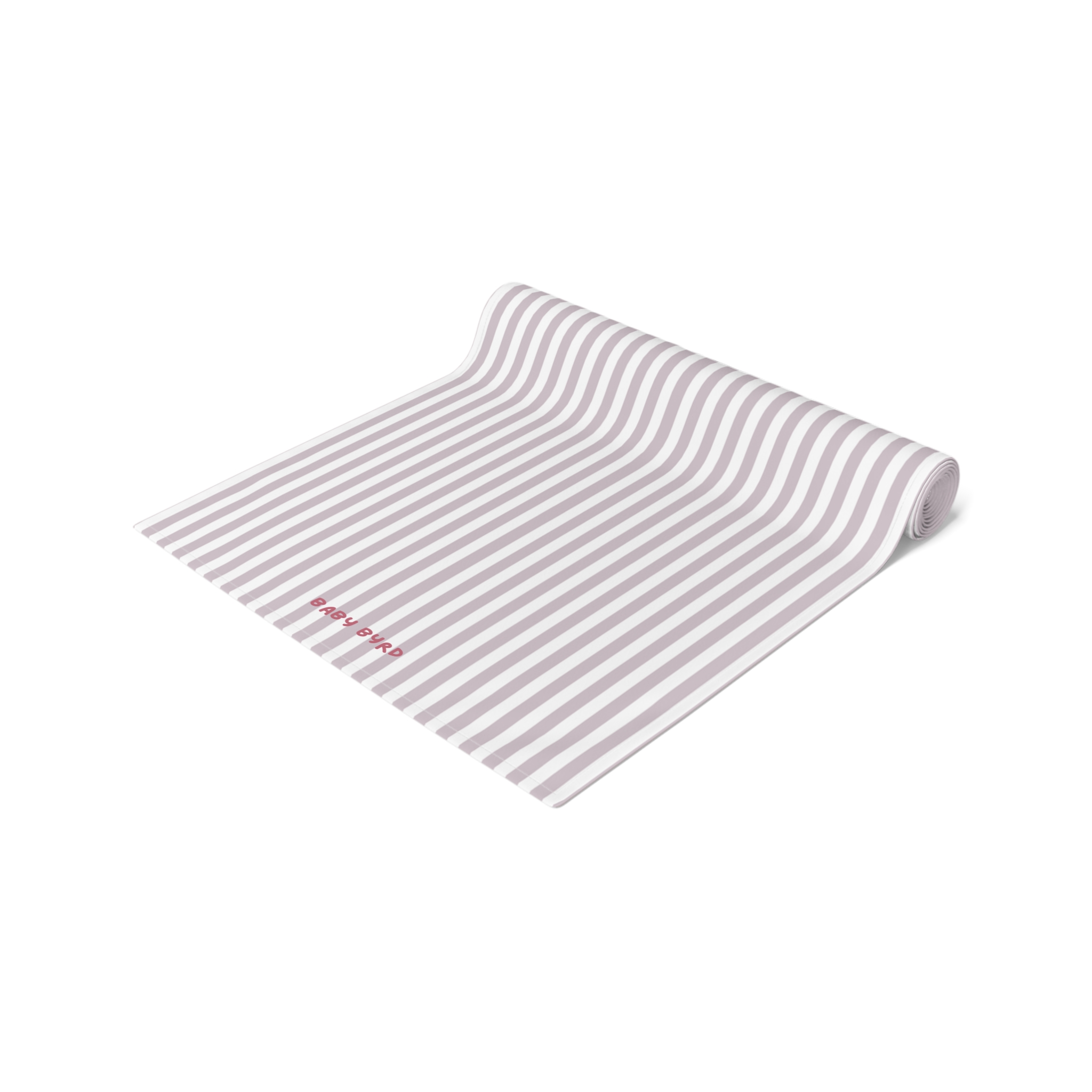 Add a touch of fly to your dining space with the Born to Be Fly Purple & White Striped Table Runner by Baby Byrd. Made from durable cotton twill, this striped fabric runner is perfect for elevating everyday meals, seasonal gatherings, or special occasions like weddings and parties. Available in two sizes (16×72 and 16×90 inches), it fits most dining tables and adds a modern yet timeless aesthetic to your home décor.