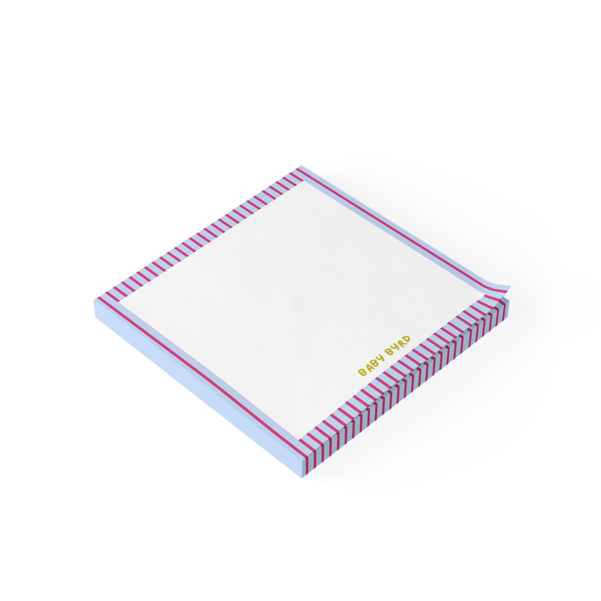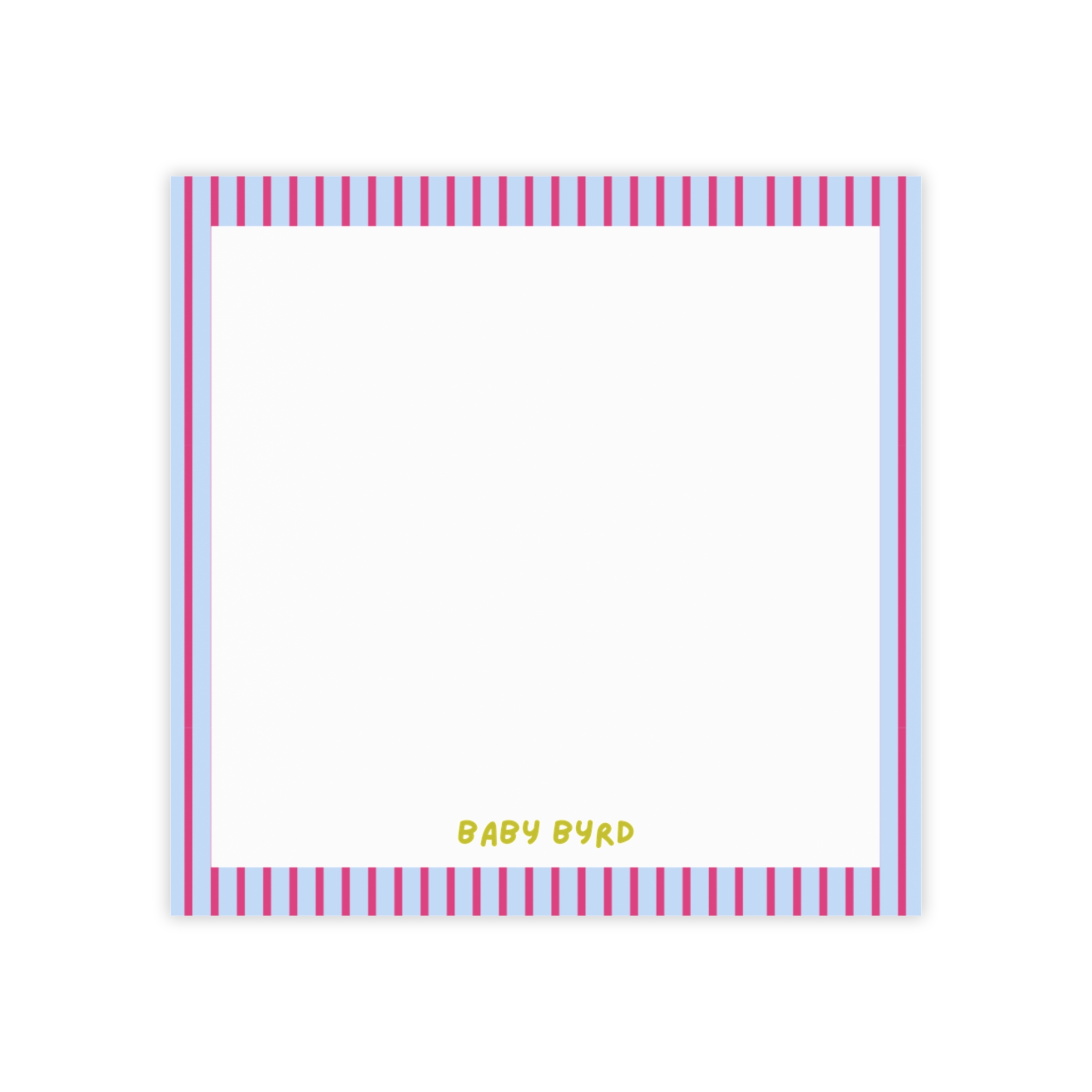 Add a pop of fun and functionality to your desk with these Born to Be Fly multicolor blue and pink striped sticky notes by Baby Byrd. Perfect for jotting down reminders, to-do lists, or little love notes, these 3×3 inch adhesive note pads bring creativity and flyness to your everyday routine. With 50 sheets per pad, they’re an essential addition to your office, school, or planner setup.